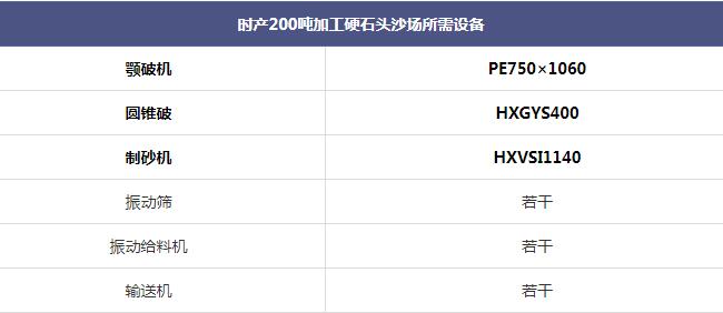 a、以时产200吨加工能力为例,处置硬矿石(硅石、大理石、圆石、河卵石等)的砂厂所需机械如下: